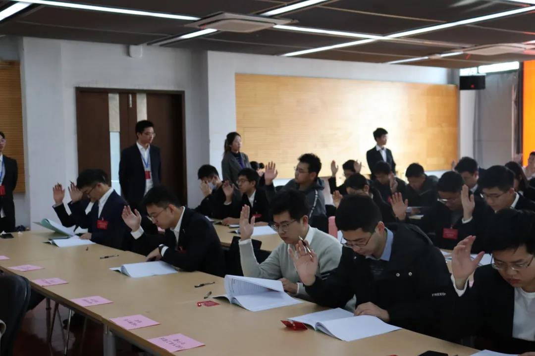BETVICTOR伟德第十七届研究生会主席团候选人于章骏、邢萍和唐倩雯进行竞选演讲,大会以无记名投票方式差额选举选出于章骏和邢萍当选为BETVICTOR伟德第十七届研究生会主席团成员。
