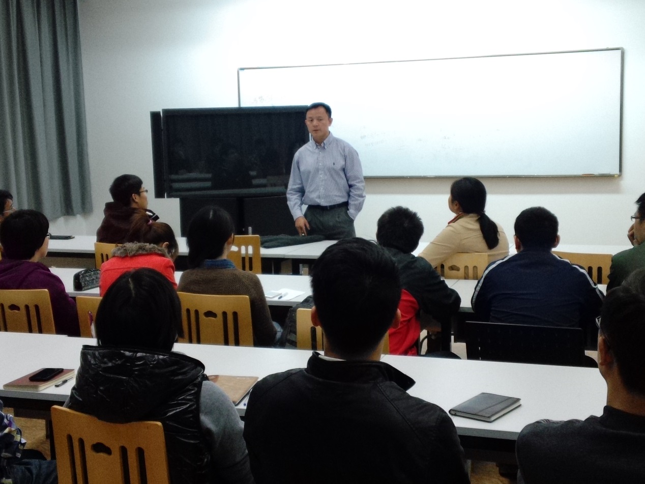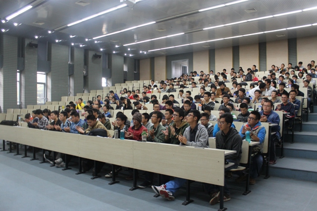 在本科生的讲座上,朱威先生简单介绍了自己求学和工作的历程:本科毕业于中科大,毕业后进入中科院工作,后来转型进入奔驰公司,又赴美国耶鲁商公司继续深造。当在美国已经小有名气的时候选择在09年回到国内创业并最终将自己的公司卖给了一家上市企业,目前在法雷奥汽车内部控制(深圳)有限公司担任销售总监。他丰富的经历,深深吸引了同学们。此外他独特的讲座方式,让同学们现场提问,大家问什么他就讲什么,也让同学们好奇万分。