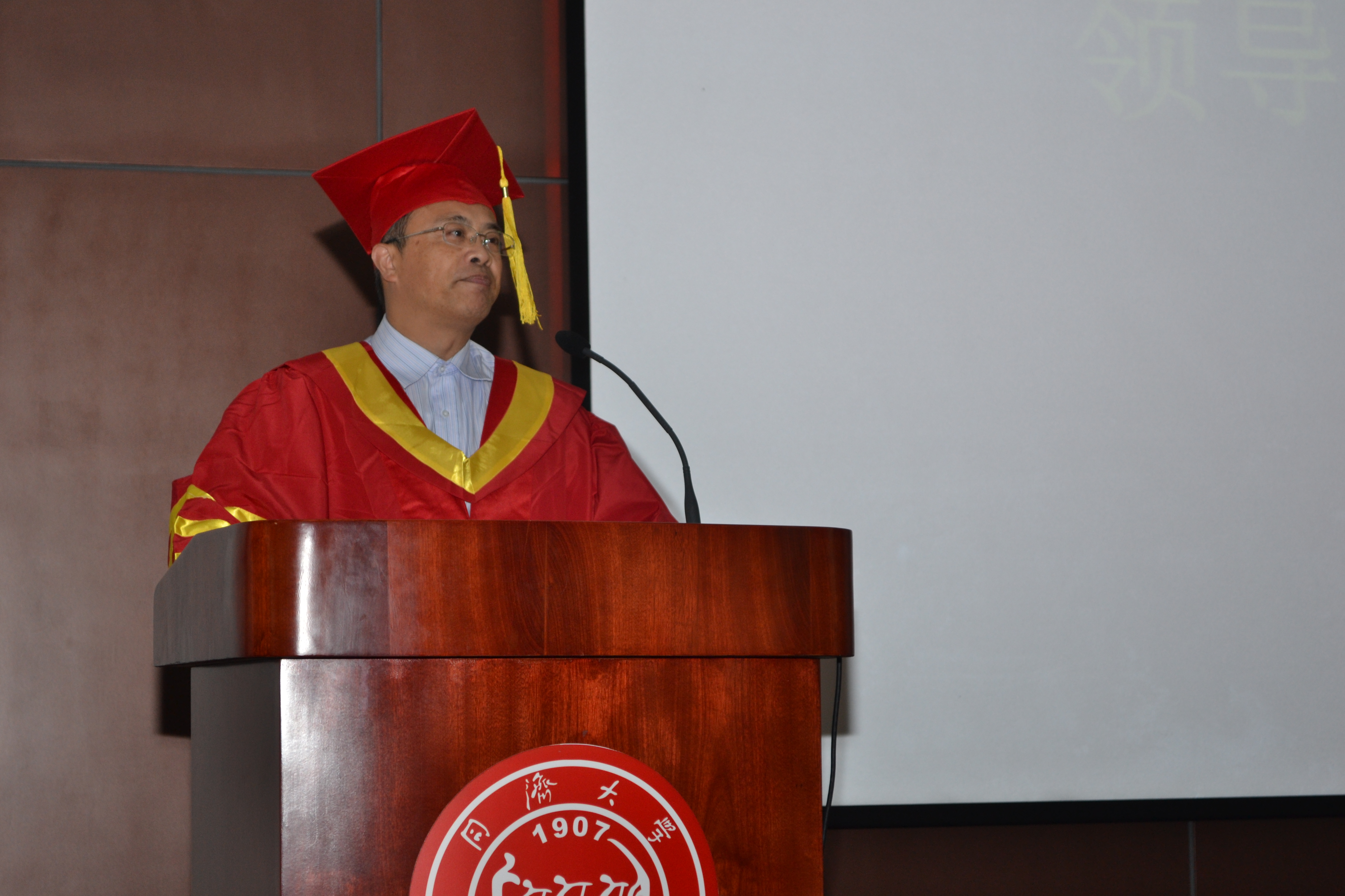 此次典礼还邀请了78级员工代表沈跃栋作为员工代表为同学们送上深深的祝福。