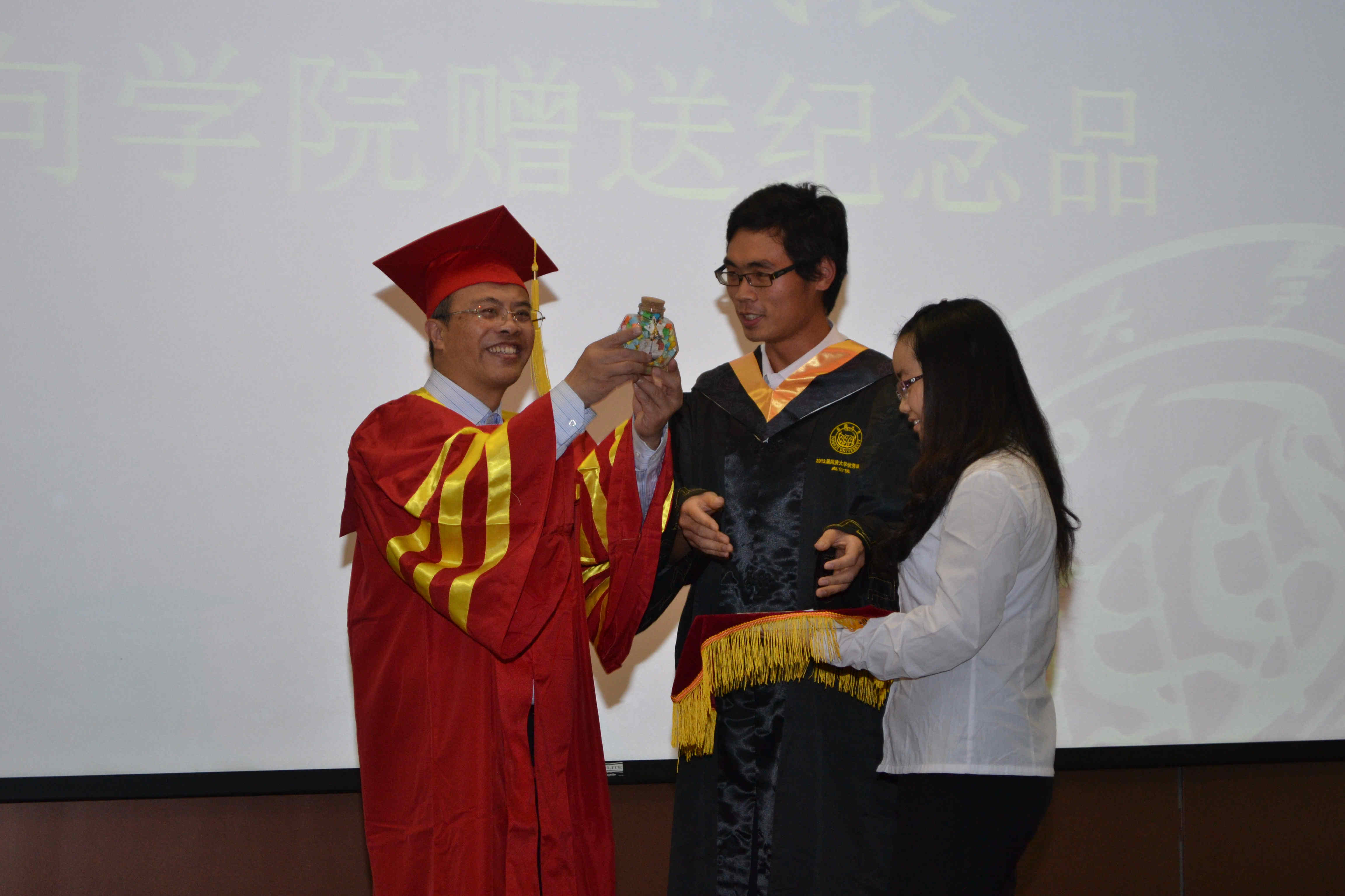 为感激母校的培育之情,毕业生也留下了颇具心思的礼物:一本具有全体毕业生个性特色的纪念册以及许下五年愿景的心愿瓶。凝练同学心声的自编歌词在毕业纪念视频中以MV的形式展现,随着音乐响起,在同济汽车五年的点点滴滴一幕幕地展现在眼前,深深感动着在场的每一位。随后教师代表、家长代表和员工代表都上台演讲,表达了对公司、公司的衷心感谢及深深眷恋。