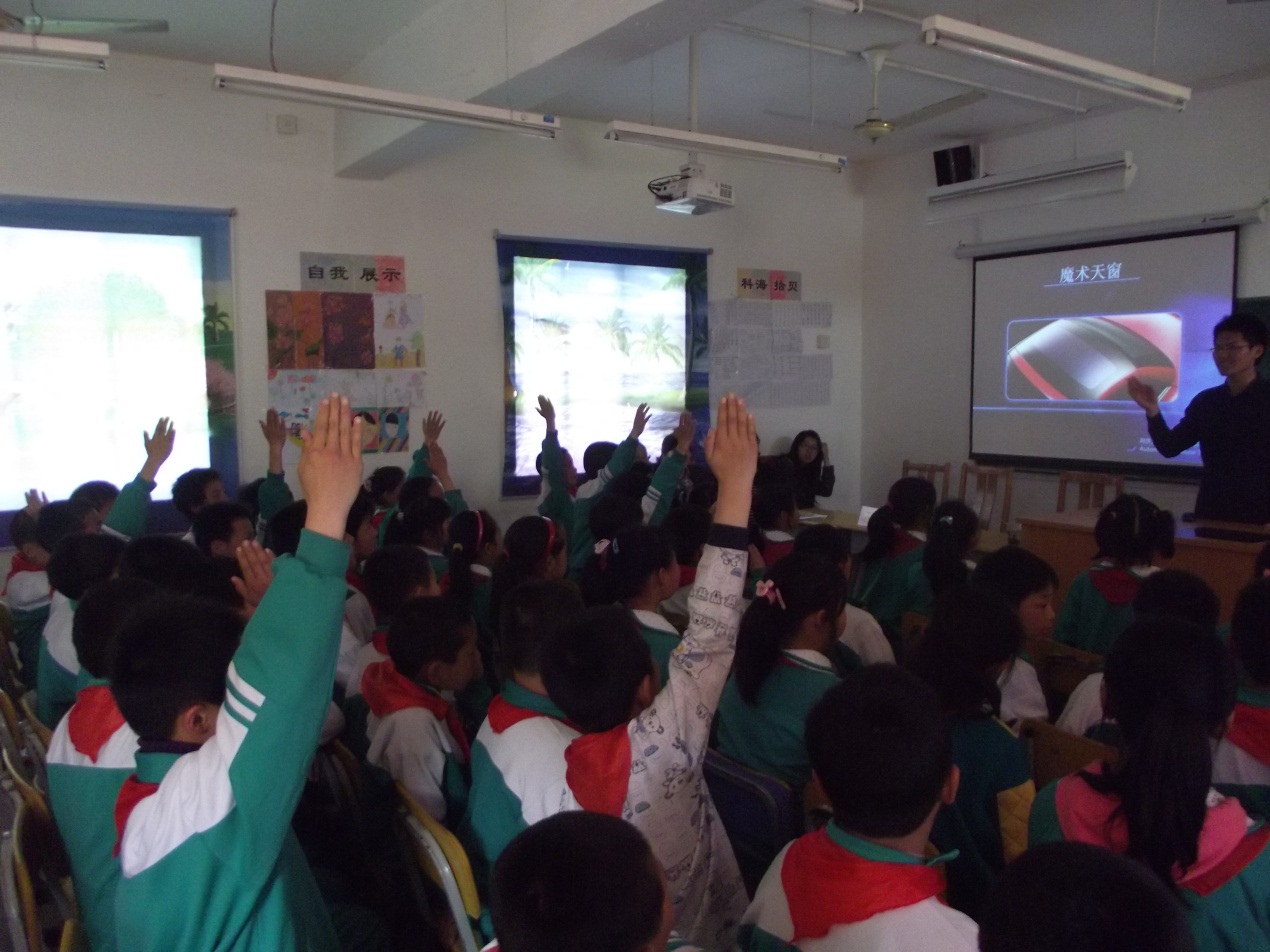 本次宣讲对象是少农小学五年级的60名员工,在授课过程中同学们表现出对知识的极大兴趣与强烈渴望。本次宣讲内容以先进技术为主,通过介绍身边可以接触到的汽车车型为例,将问题深入浅出,调动小员工们的积极性,培养他们对汽车文化的热爱。宣讲过程中结合丰富的多媒体视频,不断给孩子们眼界一新的感觉。宣讲教员的每次提问,孩子们都积极踊跃的回答,天真的答案让我们忍俊不禁的同时再次肯定了我们此次行动的目的——在孩子们之间普及汽车文化知识,让汽车真正地在嘉定,在上海,甚至在中国生根发芽!让每个人都能了解汽车,都得其真正魅力。