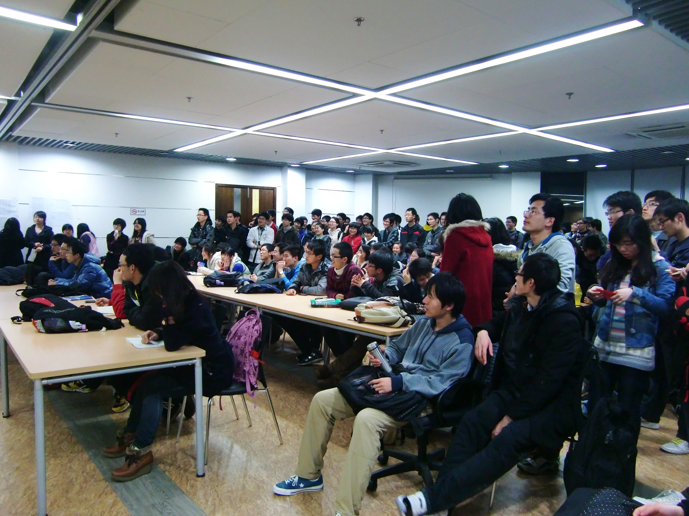 3月26日晚上公司员工会学术部在A311举行了本科生优秀学长交流会,08级的同学为学弟学妹在专业选择、出国、保研等方面做经验交流,会场座无虚席。