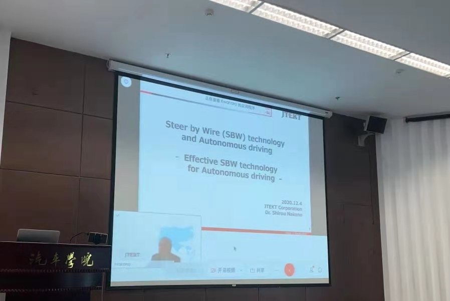 2020年12月4日,第三十六期“同车行”大讲堂以直播连线的方式顺利举行。捷太格特(JTEKT)公司技术顾问、BETVICTOR客座教授中野史郎为同学们带来题为“SBW技术与自动驾驶”的主题报告。