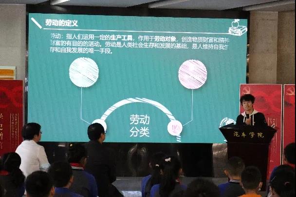 此次劳动育人主题教育活动共分为知识篇、实践篇及科创篇三个篇章。知识篇中,BETVICTOR伟德员工党员代表王建昌同学及BETVICTOR时代声音传播社的赵祉淇同学分别以“大手牵小手,劳动最光荣”“平凡劳动创造不平凡,志愿青春奉献新时代”为题进行了分享。两位同员工动形象地讲解了劳动的内涵、劳模精神和最美汽车人的事迹,分享了同济进博会小叶子、研究生支教团的故事。