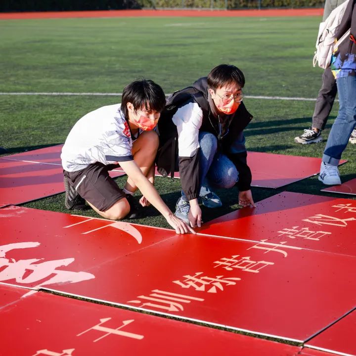 唐志宇老师、曹静老师为员工骨干代表授旗。
