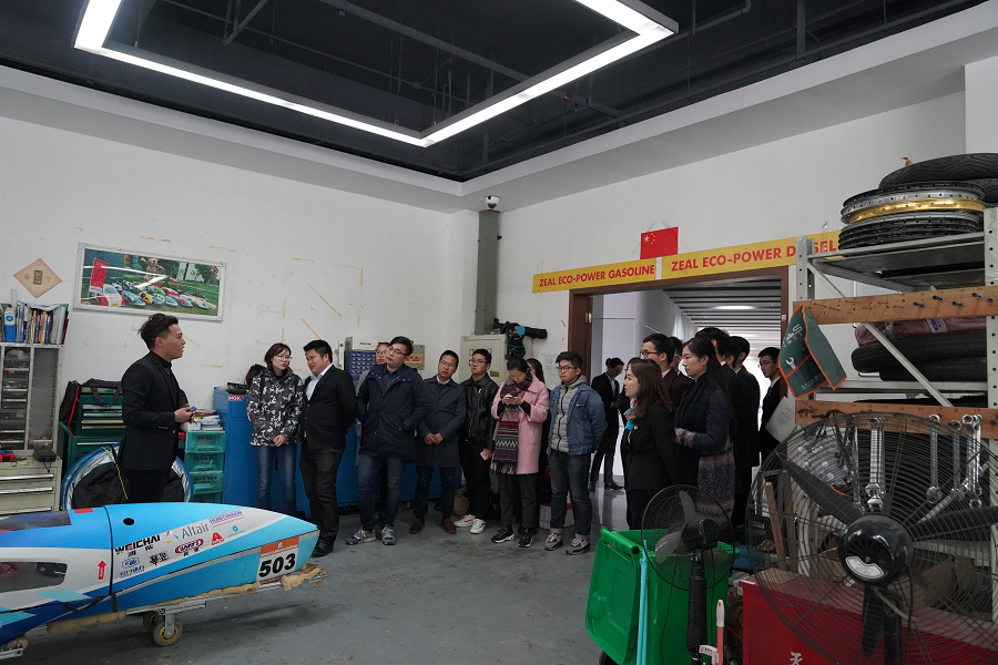 讨论环节结束后,在工作人员的带领下,大家来到公司试车场,观看志远车队的节能赛车试跑,并且与车队队员及车手进行了亲切交流。