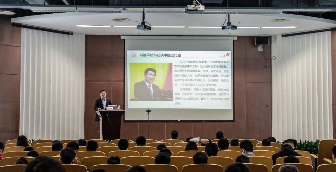 孔老师首先回顾了中国近现代曲折的历史,通过讲述近现代历史中的代表人物和文学作品,引发了师生对历史的思考与共鸣,并尤为重要阐述了中国共产党的成长与发展,详细分享了李大钊、彭德怀、陈毅等一批优秀共产党员的感人事迹与辉煌故事,使在场师生深深感受到中国共产党的初心与使命。