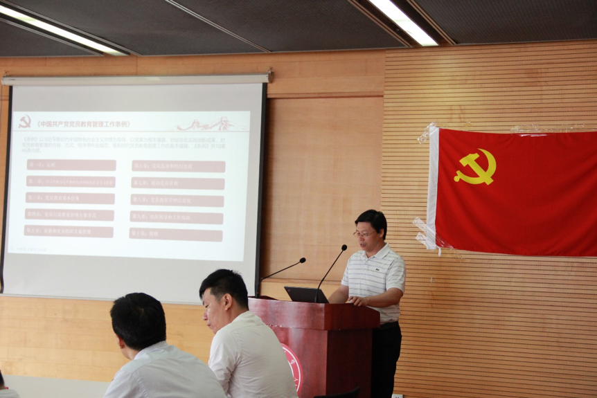 之后,公司党委副书记、经理张立军同志上专题党课,带领全体党员学习《中国共产党党员教育管理工作条例》。张立军同志重点阐释了总则、党员日常教育管理主要方式、党员监督和组织处置、党员教育管理信息化等内容。