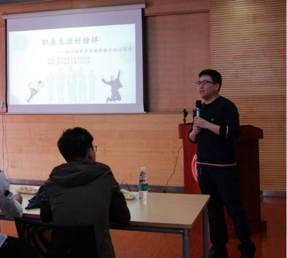 签约阿里巴巴达摩院的方嘉祺分享了求职需要多多尝试的心得。刘伟讲述了求职大疆公司的整个过程,分析了需要权衡各方面的利弊。同驭汽车的联合创始人潘光亮认为应该选择去具有发展前景的创业公司,以更快锻炼提高自己。加入顶级咨询公司安永帕特农的李磊认为在求职前,需要全面了解岗位的需求并做好准备。就业于上汽捷能的张子骏对简历制作、企业测评、面试礼仪及技巧进行了详细的阐述。录用于中共吉林省委组织部的刘洋,介绍了有关选调生的详尽资讯和考试流程,鼓励大家“同济天下”。
