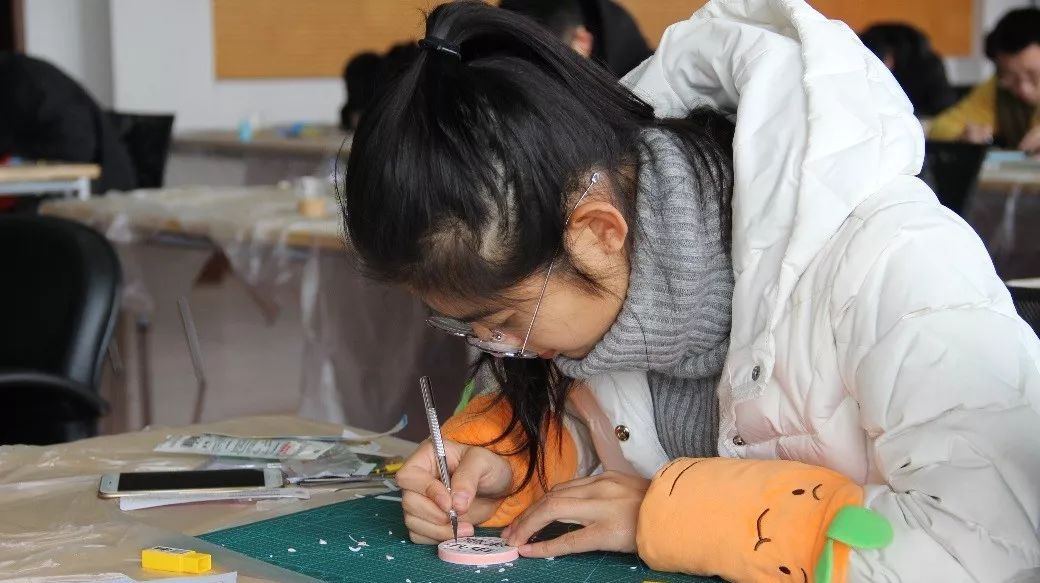 活动一开始,来自本次活动的主办方研究生第三党支部的于宜泽同学介绍了活动举办的初衷,紧接着沈佳莉同学向大家讲解了剪纸和篆刻的基本知识,演示了剪纸和篆刻的方法和技巧。接下来,同学们自己动手,制作印章与剪纸图案。剪纸图案包含社会主义核心价值观、中国梦等主题,篆刻图案则以国旗、党徽、校徽及“习思想”关键词为主要内容。同时,主办方还为每位参加活动的同学设计了姓名印章图案,不少同学现场刻出属于自己的人名章留作纪念。
