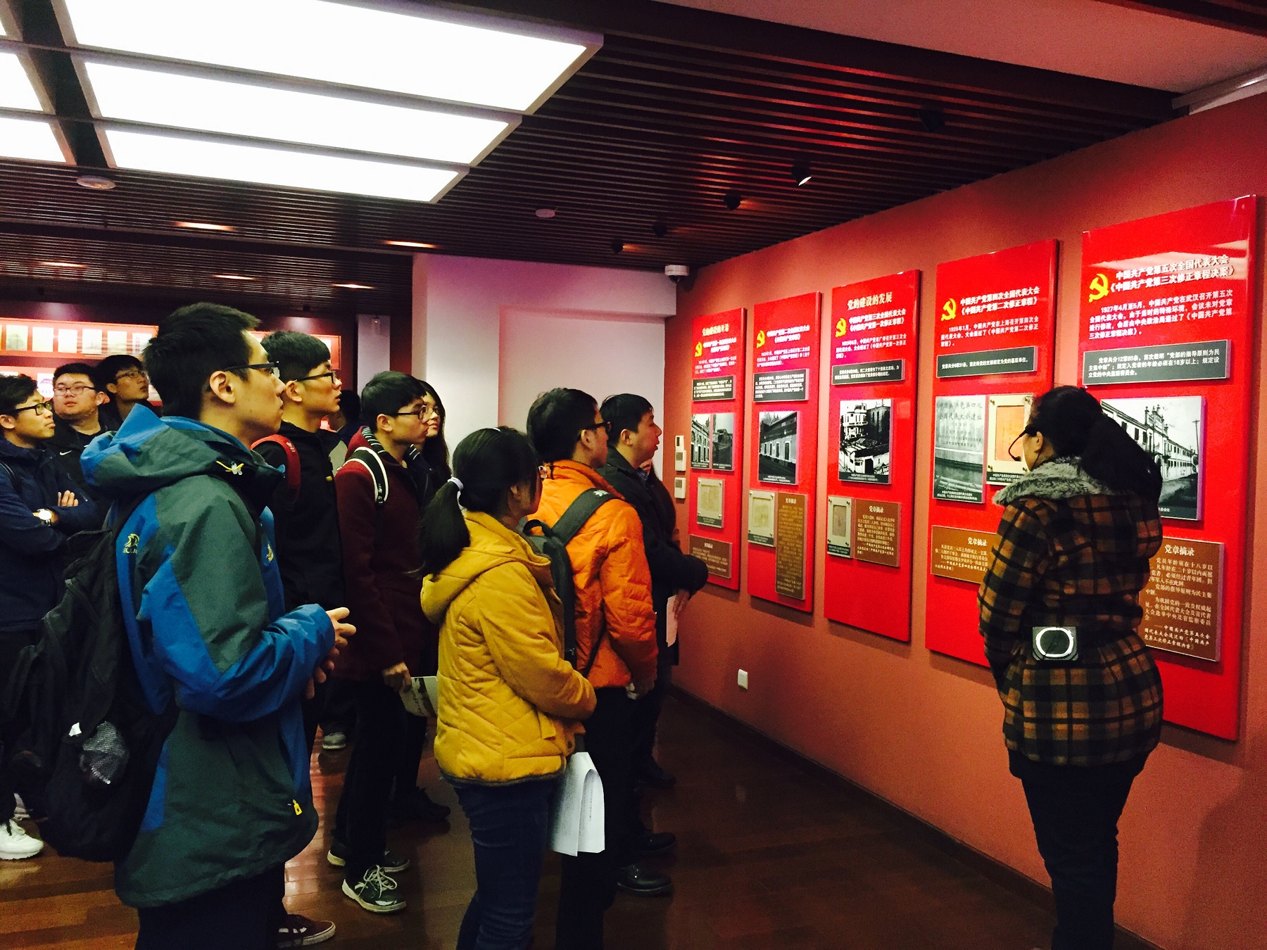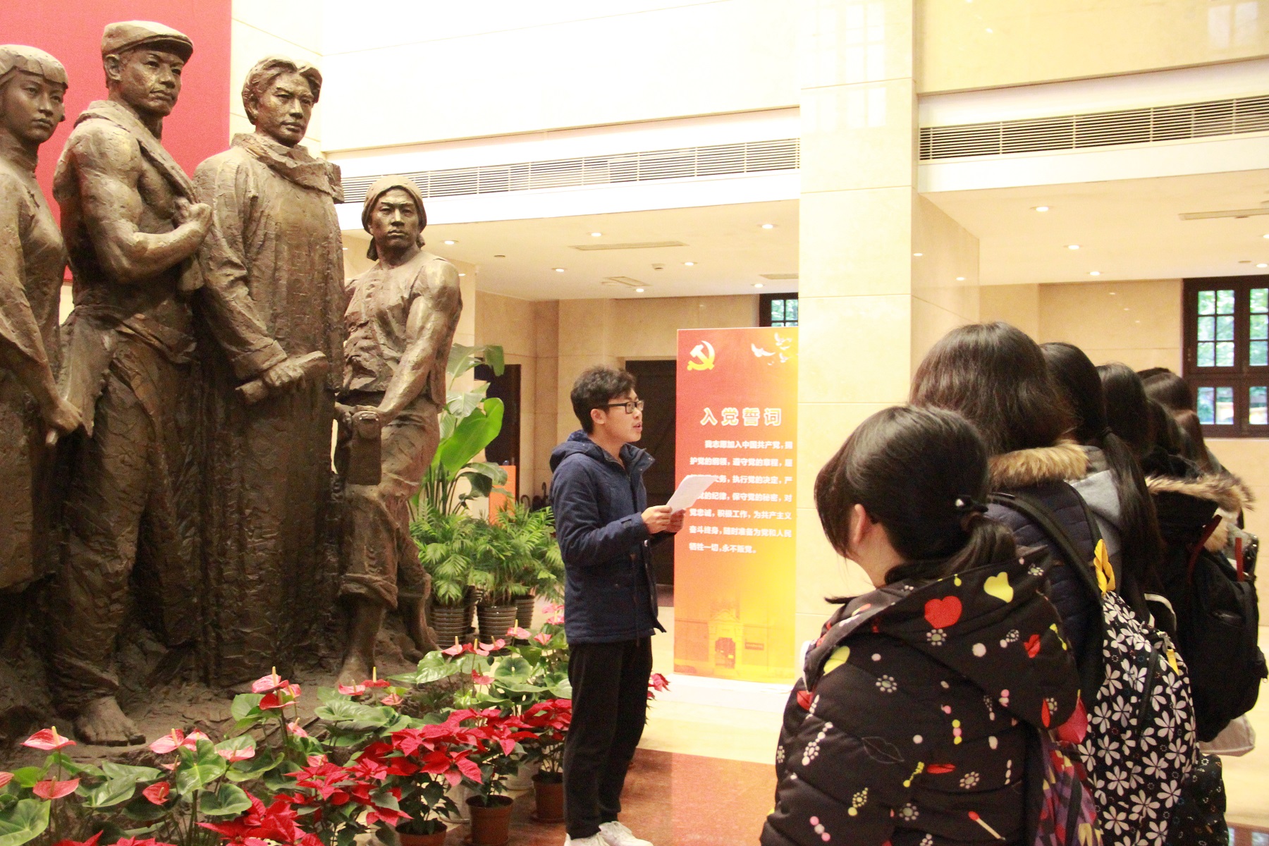 12月20日上午,2015年度新发展党员入党宣誓仪在中共二大会址举行,参加本次宣誓活动的有32名2015年度新发展的预备党员以及新上岗支部书记、支委,学工办葛畅老师、曹卢老师参加了本次活动。