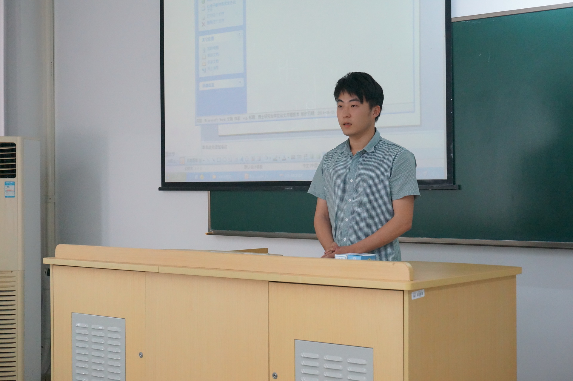 接下来,2013级博士党支部书记孙晨乐向大家介绍了博士论文选题报告的内容组成、具体写法及评分标准。通过结合其个人在撰写选题报告及进行答辩的经历,分析了选题报告中各个组成部分间的逻辑关系及每一部分的写作要点。同时,2013级博士中已经进行论文选题的硕博连读生也就各自的选题心得与大家进行了分享。