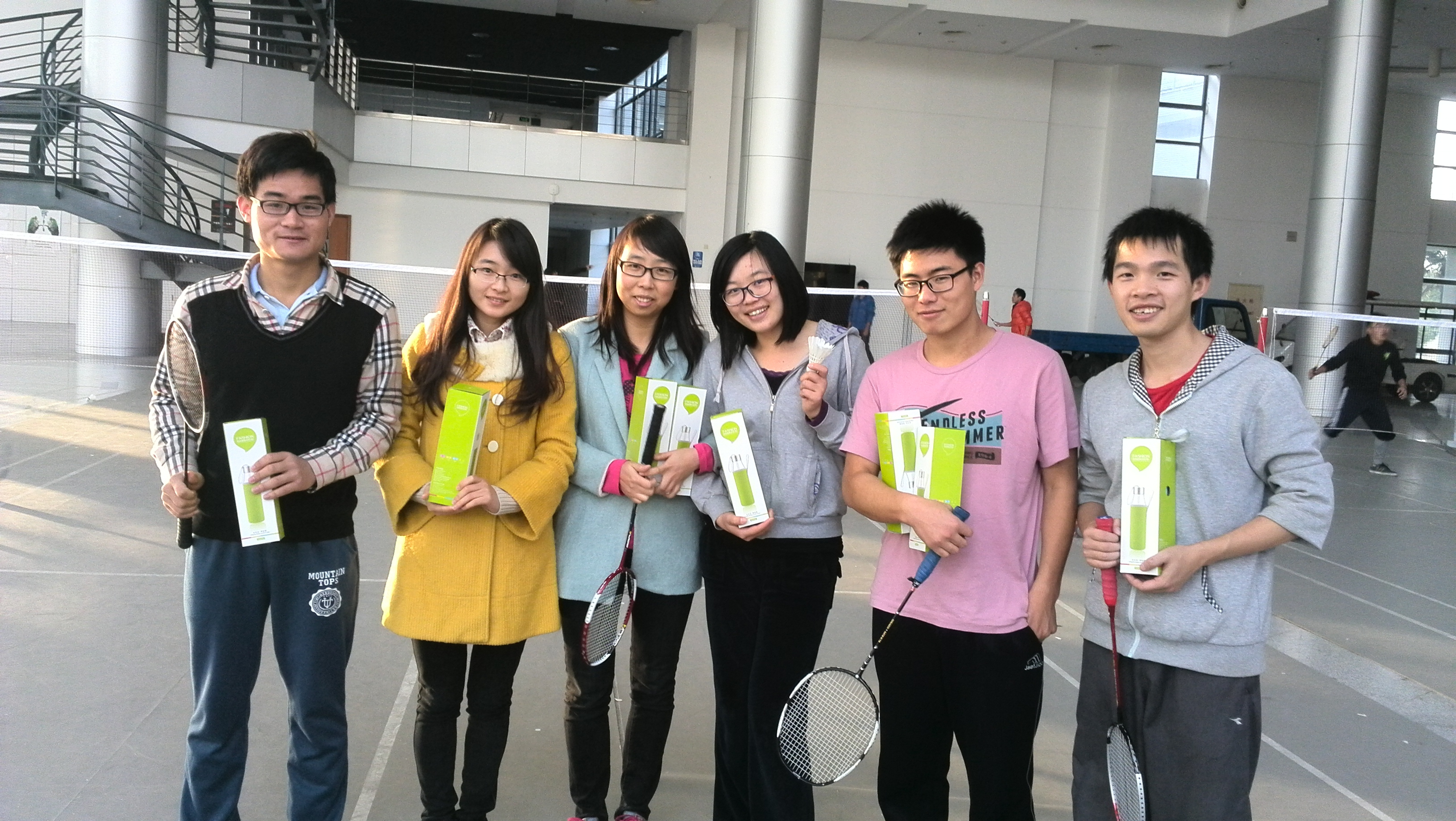比赛结束后各项个人赛的冠军获得了精美礼品以示奖励,本次羽毛球赛圆满结束。在此次羽毛球赛中,同学们不仅感受到了运动的乐趣和热情,而且张扬了青春和活力。同时,此次比赛丰富了同学们繁忙学术之外的生活,增进大家互相之间的沟通交流,更重要的是加强了班级凝聚力和集体归属感。