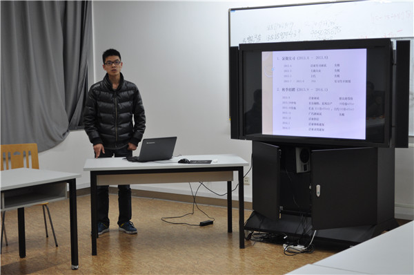 首先,王禹学长讲述了自己在错过暑期实习之后的找工作经历,向大家详细介绍了他所签署的工作,以及所参加的一些重大公司的面试过程,让大家对面试的流程有了大致的了解。然后,高丽华学姐讲述了上海大众的暑期实习准备期、招聘期、实习期及录用期等不同阶段所需要注意的事项,并提出了提早做好准备的重要性。邓永强学长则是从实习期的工作内容以及如何在实习期突出表现等方面来介绍自己的经验。最后,胡竞学长以自己坎坷而丰富的实习及就业经历,向大家传递了自信、争取机会、坚持不懈的精神。