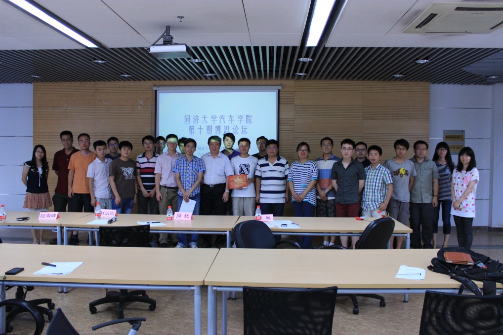 论坛中,陆海峰博士和方剑光博士分别对各自的题目做了细致入微深入浅出的讲解。方剑光博士讲解了车身结构采用代理模型方法进行优化的流程与重难点,包括其中的不确定性和最优解的选取等研究点。陆海峰博士向大家展示了前沿的发动机高能点火技术及其与传统方法的区别。并在现场演示了高压点火的试验,给大家留下了深刻印象。在报告人讲解完毕后,现场博士生对研究内容进行了提问,互动交流,现场氛围活跃。然后两位点评导师对报告人的报告给予了肯定和中肯的建议。会后还有博士们单独找主讲人进行深入的交流。讲座结束后,由周鋐教授和赵治国教授向两位报告人发了荣誉证书并和全体听众一起合影留念。