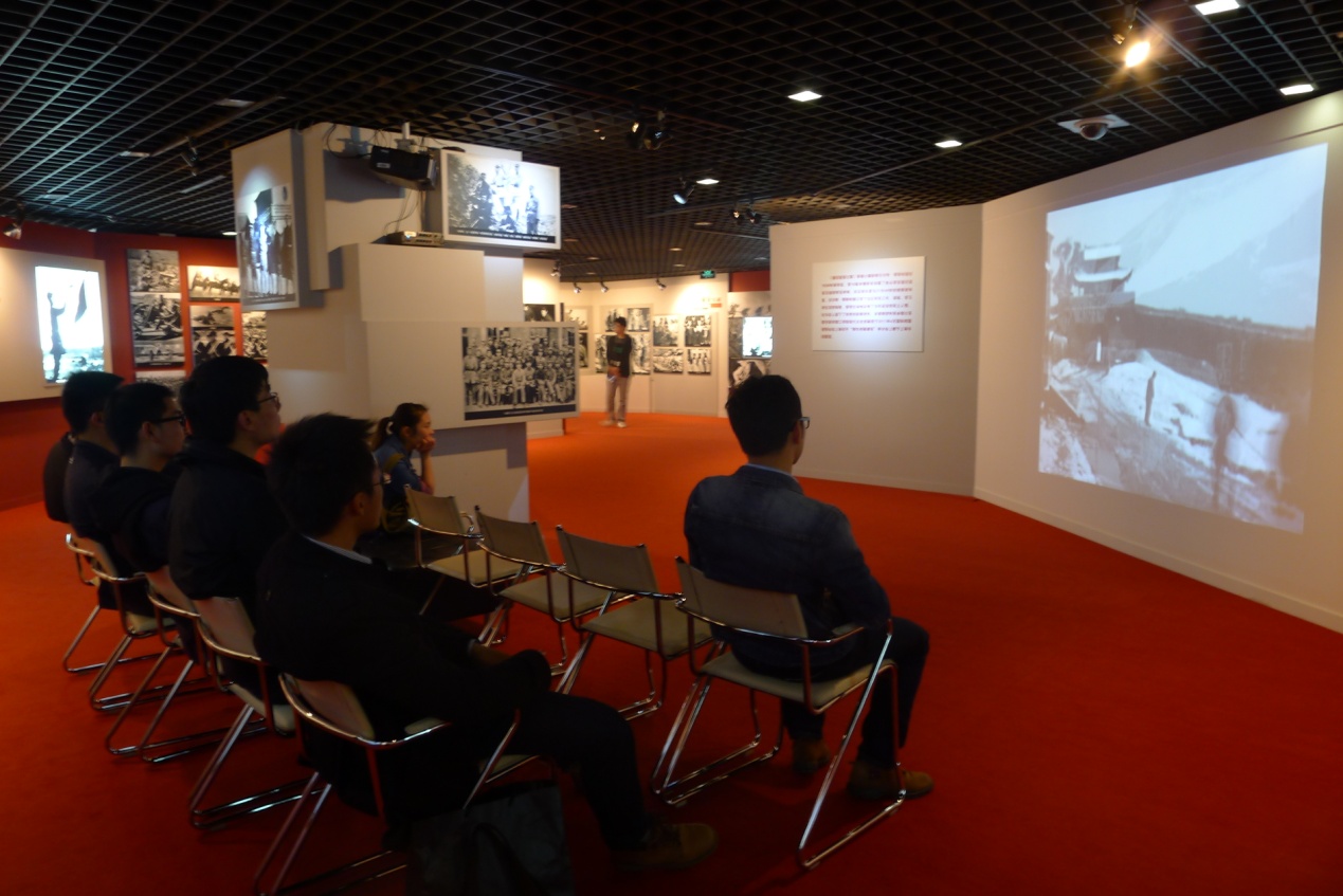 馆里收藏资料很丰富也十分珍贵。首先是对一些著名的外国记者们的介绍,并一同展出了他们拍摄的照片以及他们的机打或者手写的新闻稿。有抗大的课堂上员工认真听课的情景,有党的领导人发表演讲的盛况,也有许许多多延安军民的生活照片,操练的士兵、种地的农夫、挑水的青年、烧饭的妇女、嬉笑玩闹的孩子……照片都是以旁观者自然的角度拍摄,显得格外真实也尤其的具有表现力。正是这些外国记者,通过他们的真实报道和陆续出版的书籍,让世界知道在中国偏远的地区,有这么一只信仰坚定、作风优良的革命队伍;正是他们,也让我们有机会了解那段难忘的历史。党员们认真地观看一张张黑白图片,阅读每一段文字和一块块展板,走进了70多年前那段波澜壮阔的岁月。