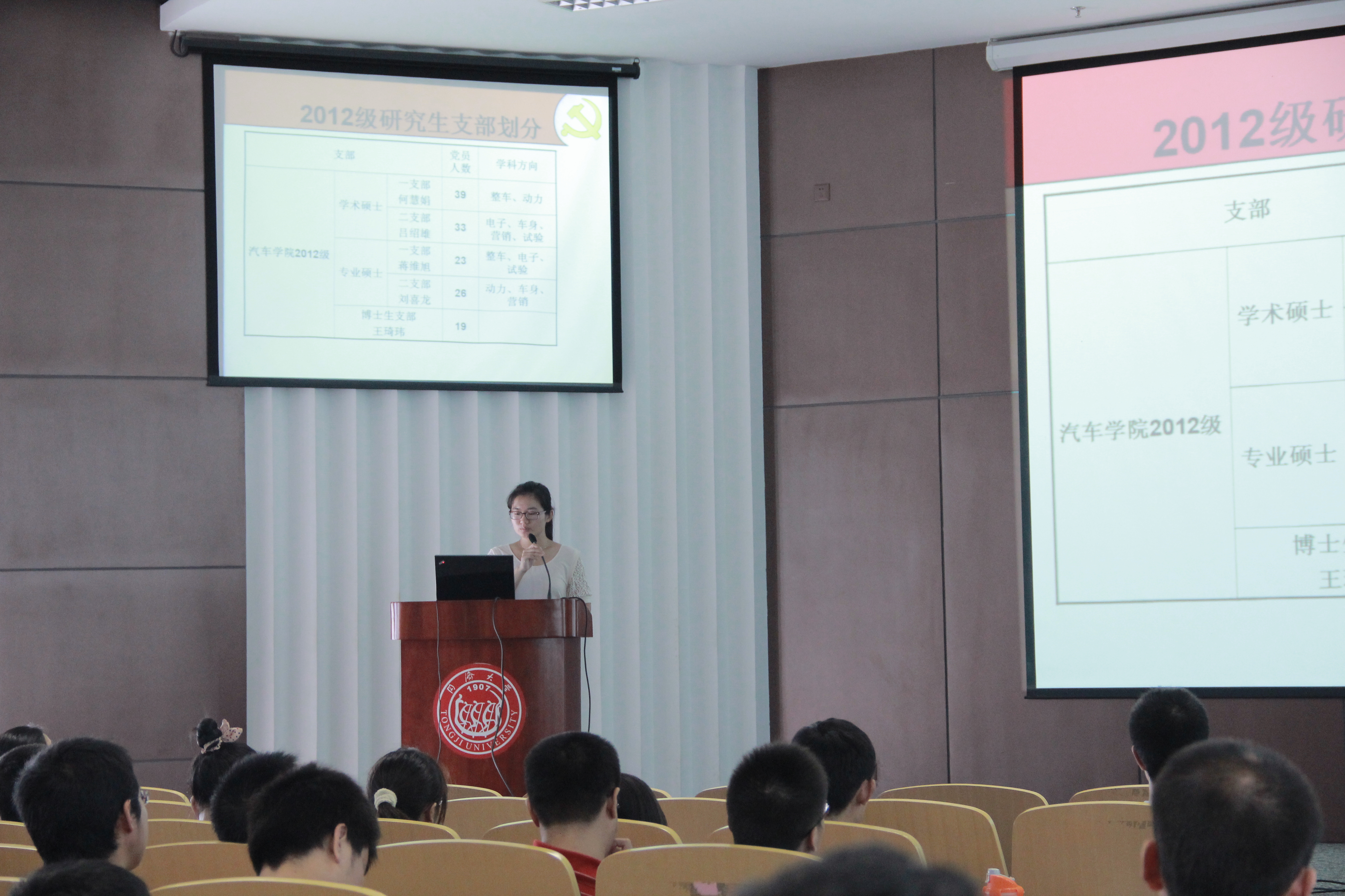2012年10月10日中午12:30,在工程中心二楼报告厅内,2012级研究生全体新生党员大会顺利召开。此次大会的与会人员包括公司党总支副书记曹静老师、葛畅老师以及2012级全体新生党员,大会由葛畅老师主持。