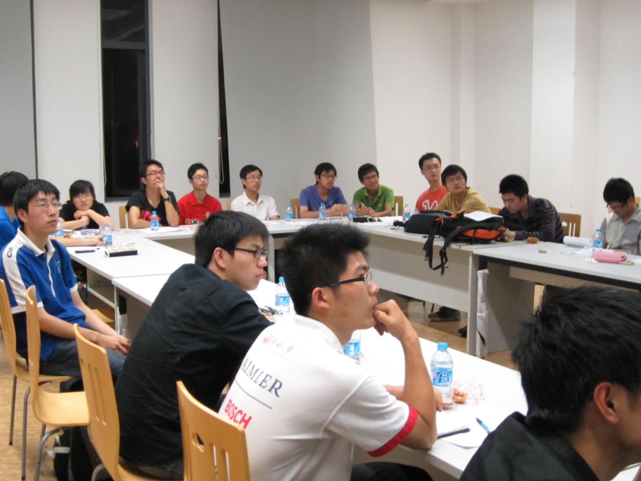 2012年5月15日晚上,公司党支部08级本科生支部组织支部成员,向10级的同学介绍创新基地的各项活动,并与学弟、学妹们进行面对面的交流,解答他们在创新活动、学业、生活上的各种疑惑与问题。