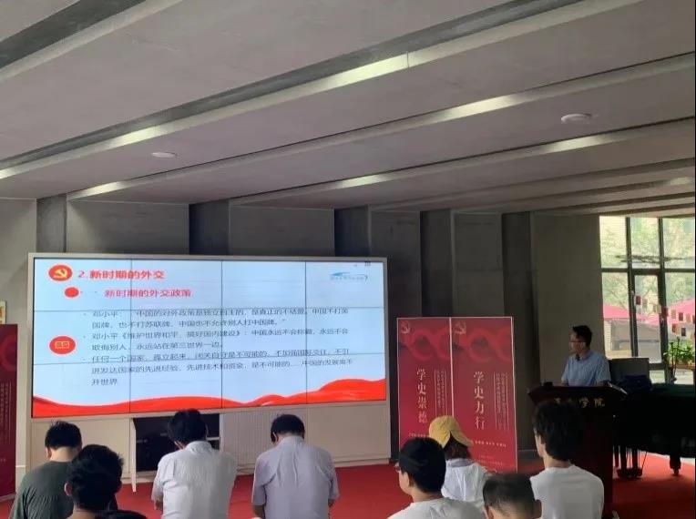 王宁老师主持学习,他结合自身经历讲述了我们党团结带领人民进行改革开放新的伟大革命,开辟中国特色社会主义道路,形成中国特色社会主义理论体系,确立中国特色社会主义制度的奋斗历程。以鲜活实例和详尽的史料阐释了解放和发展社会生产力、增强社会发展活力,对于改善人民生活水平、增强综合国力和提高国际地位的巨大推动作用,展现了中华民族从站起来到富起来的伟大飞跃历程。