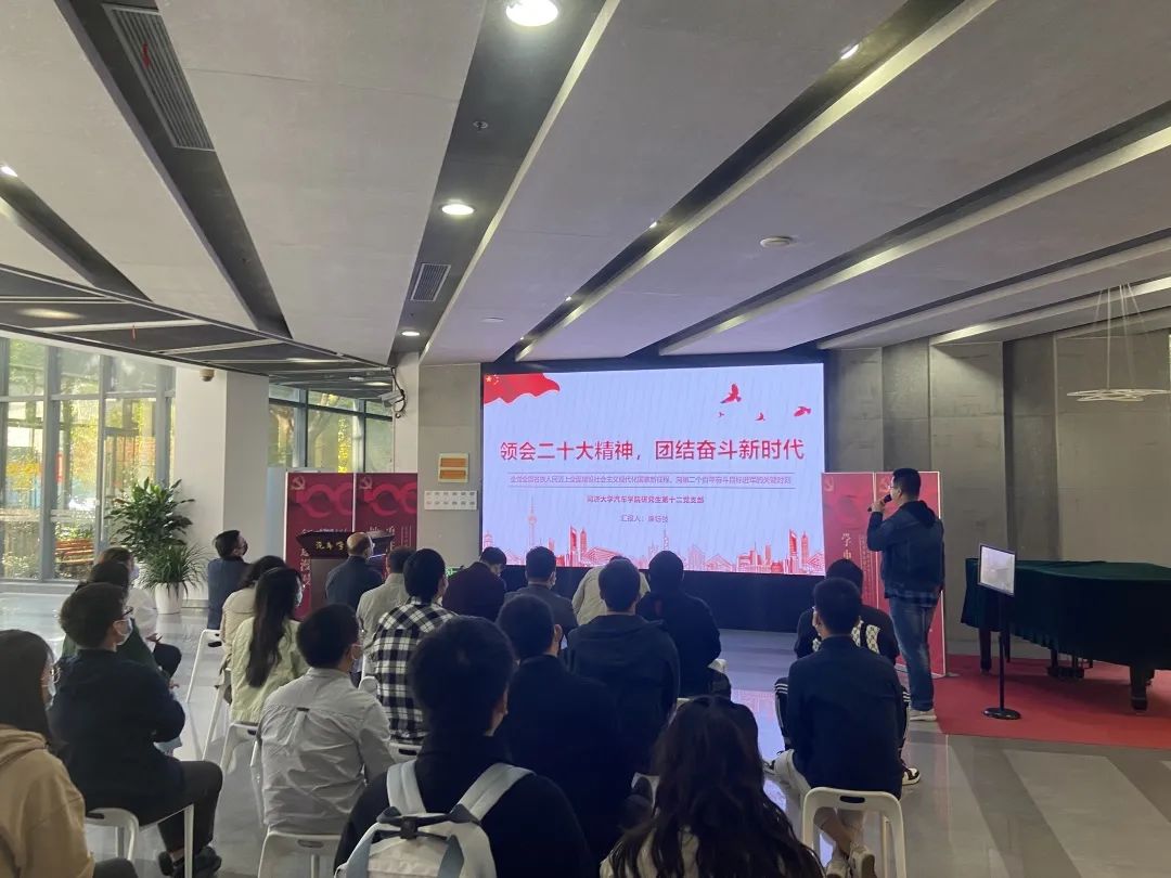 首先,研究生第十二党支部廉钰弢同志带来题为“全面准确学习领会党的二十大精神”的理论分享,突出强调了全面准确学习领会党的二十大精神的重大意义,详细阐述了学习领会、宣传贯彻二十大精神过程中需要着重把握的几个关键方面。本次分享对于师生党员来说是深化思想认识的重要过程,不仅引导大家更加准确、深入地学习和领会二十大精神,更号召大家要高举旗帜、凝聚力量、团结奋进,将践行二十大精神贯彻在行动之中,踔厉奋发、勇毅前行,为全面建设社会主义现代化国家、全面推进中华民族伟大复兴贡献力量。
