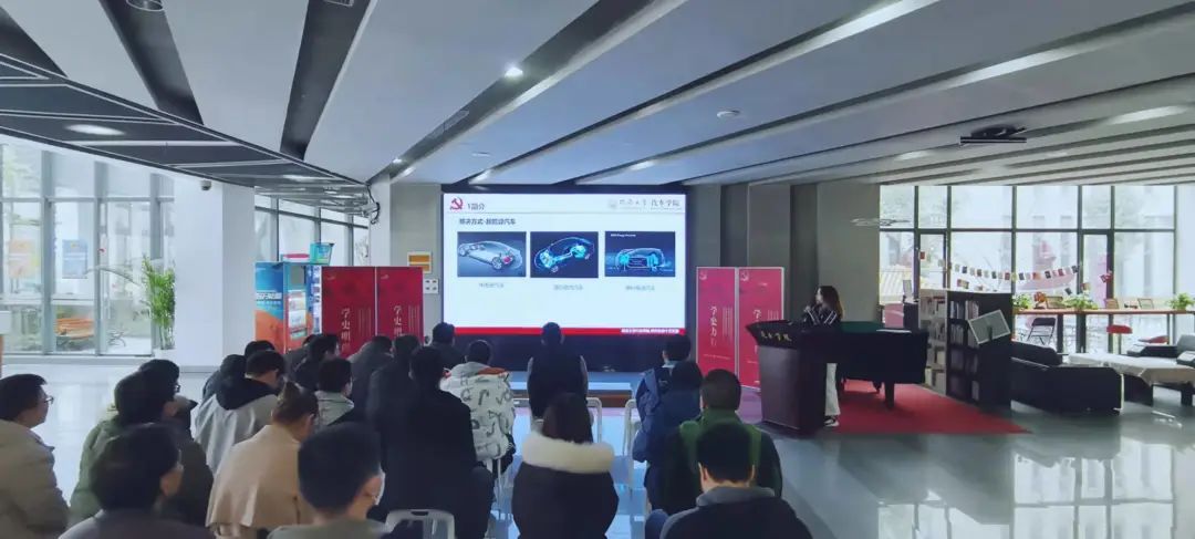 活动第二部分由研究生第十党支部刘昭同学和大家分享了“智能网联新能源汽车能量管理策略”的报告。