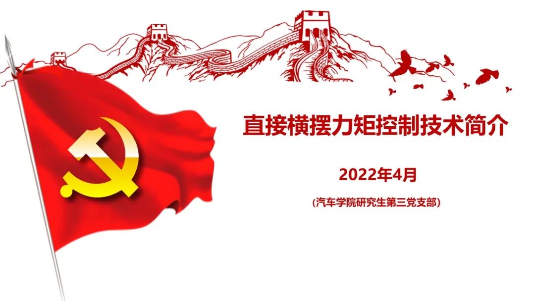 活动第二部分,研究生第三党支部朴文海同学和大家分享了“直接横摆力矩控制技术”的相关内容。