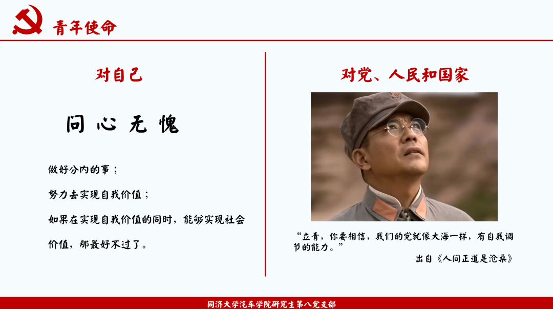 第六党支部的单万超同学从个人经历、生涯规划和理想信念、青年使命三个板块进行了分享。在个人经历方面,作为一名党员,必须在思想政治和学习工作方面发挥模范带头作用。