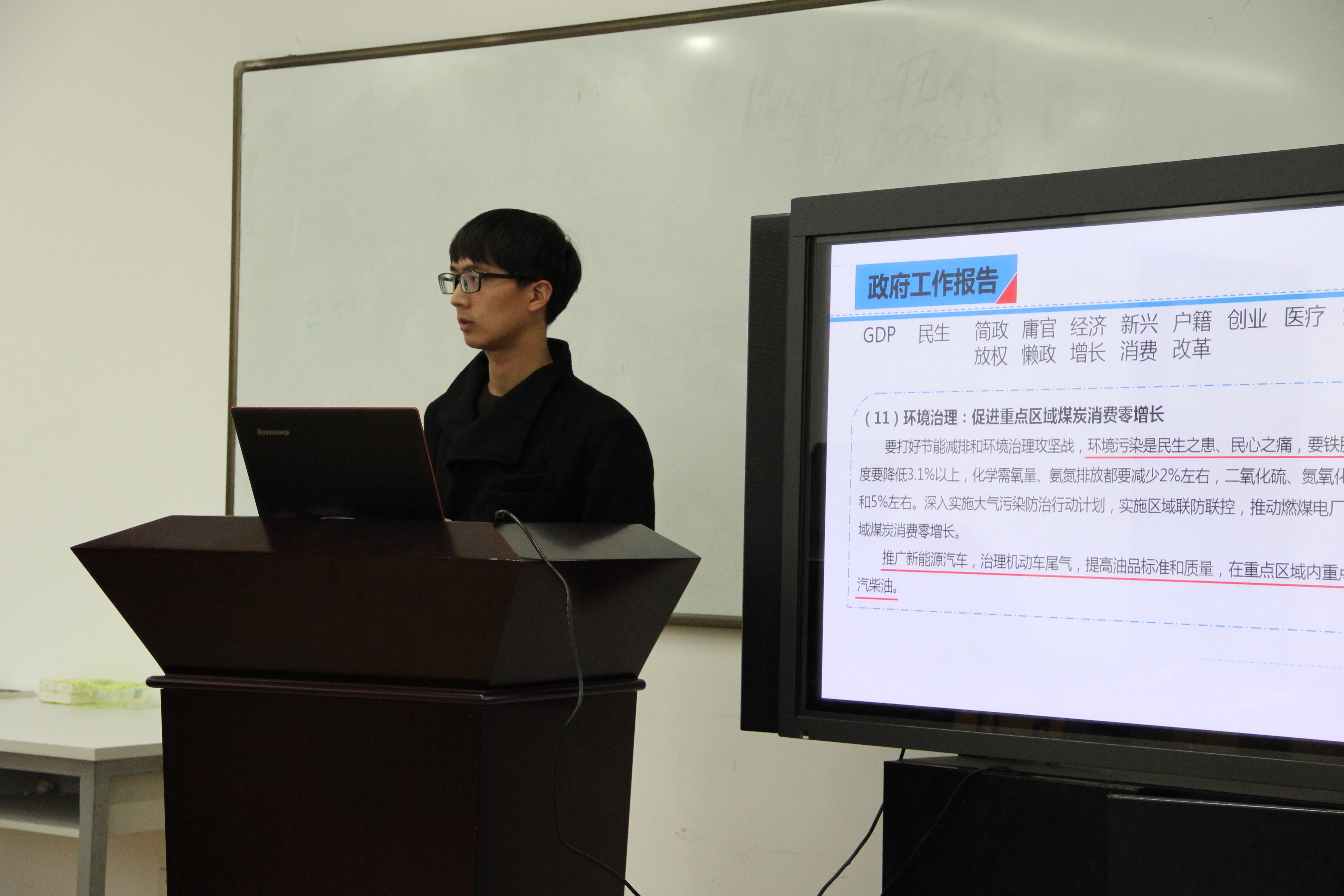 2015年5月28日下午,由2014级学术硕士二支部举办的“时政座谈会”在公司B205教室进行,此次时政座谈会的主题是“汽车与环境”。座谈会之前各小组进行各自学习、总结,座谈会上解读并分享小组对“汽车与环境”这一主题的学习和理解。