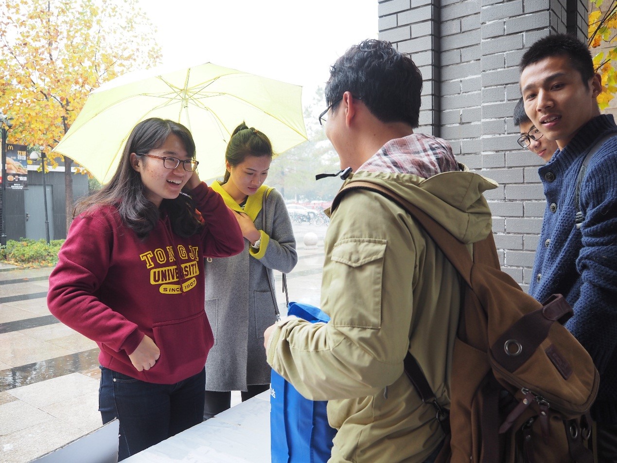 活动当天,天公不作美,上午就开始淅淅沥沥的下起秋雨,为了保障参与捐赠活动的同学方便,活动依旧正常进行。