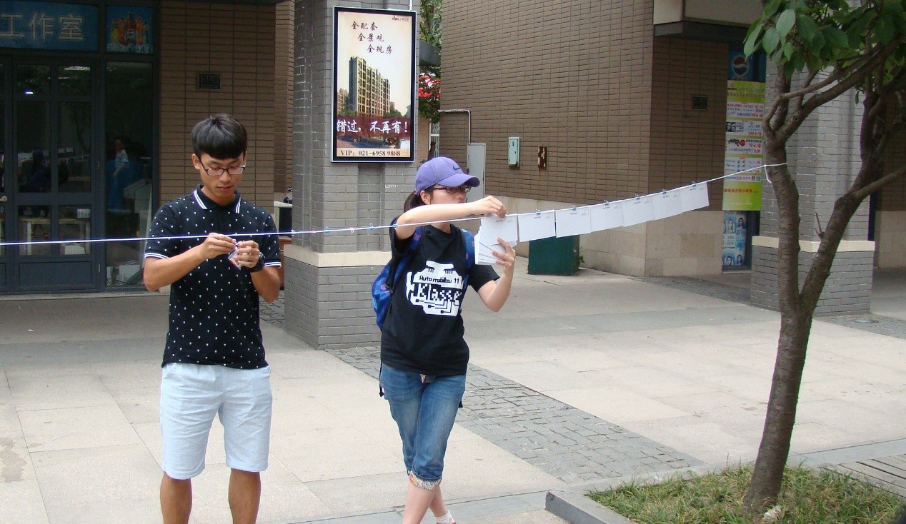 下课后活动引来很多人围观,好多刚刚了解到的活动的同学表示对活动的关心,并且趁着中午的时间赶回去收拾衣物,参与活动。