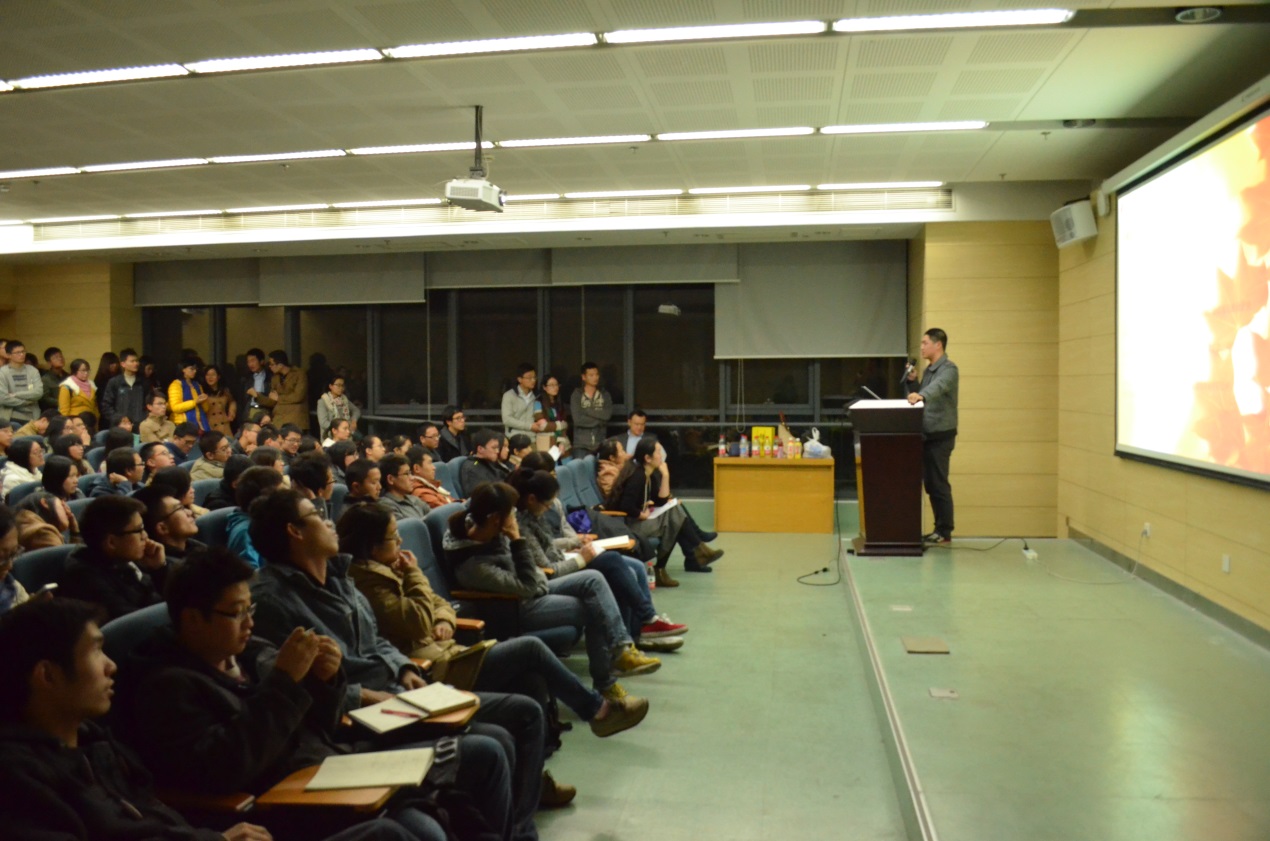 2013年11月19日,“同车行”职业生涯面面观暨“枫林学堂”之职业发展培训活动在晚交运103报告厅圆满举行。本次培训由BETVICTOR研究生会嘉定工作委员会人力资源部、BETVICTOR伟德研究生会和交通公司研究生会合作举办。邀请到舍弗勒大中华区工业事业部人力资源总监邵正江先生作为主讲人,一同前来的还有舍弗勒大中华区战略招聘和雇主品牌部主管曹月艳女士。同时,现场还要请到两位分别来自电信和交通公司的”求职达人”学长与大家面对面交流成功求职的经验。此次活动员工参与度很高,不时传来阵阵笑声,台上的讲演者抑扬顿挫、平仄有致,台下的观众聚精会神,专心致志,座无虚席,由于听众人数远超座位席数,大家把两侧门口围得水泄不通。