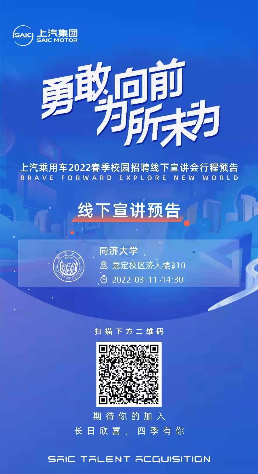 上汽乘用车2022春季校园招聘线下宣讲邀请