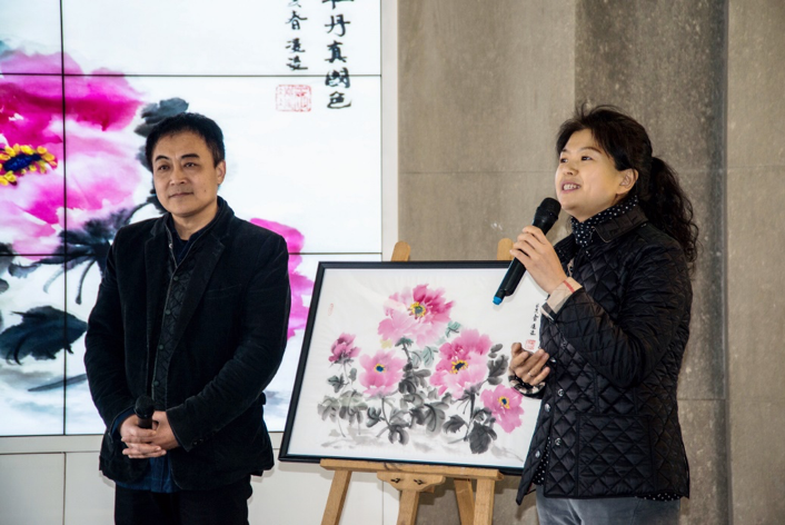 仪式上,“中国画教师研修班”参展教师代表、材料科学与工程公司王凌凌老师分享了绘画创作感悟。研修班指导教师、艺术与传媒公司于澎教授对王凌凌的画作进行了点评。