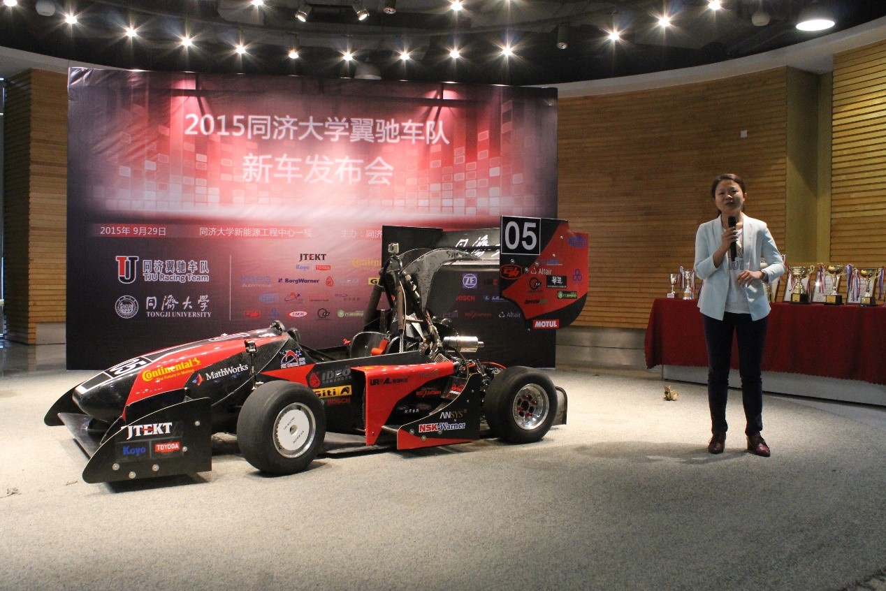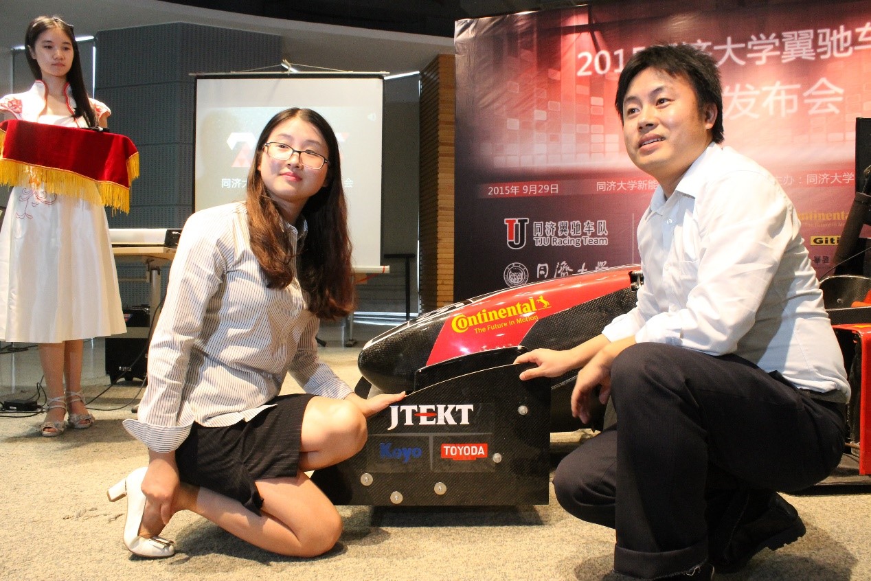 同济翼驰车队铂金级赞助商JTEKT与新车上的公司logo合影