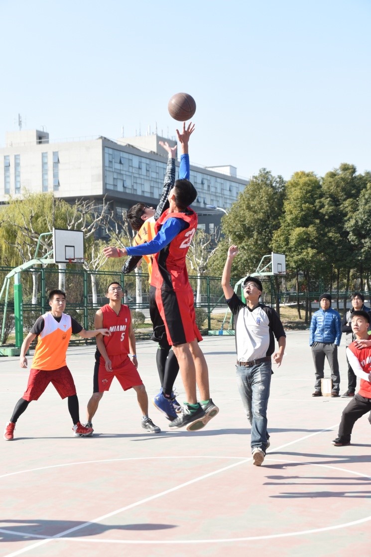 中午的决赛在研究生队伍卓平队以及本科生队伍114队中进行。赛场上各位队员本着“友谊第一、比赛第二”的精神,奋力拼搏。交战双方你来我往,场下的观众的呐喊声从未间断,这使得队员们更加活力四射。随着最后一声长哨响起,比赛在欢呼声中结束了。最终卓平队凭着他们精湛的技术以及高度的默契,以41:21的比分摘下了冠军,114队获得了亚军。三四名在研究生队伍昌哲队和本科生队伍115队之间展开角逐,最终115队依靠他们的互相配合取得了季军,昌哲队获得了第四名。颁奖仪式之后,各获奖队伍与颁奖嘉宾合影,篮球场上洋溢着欢乐的气氛。