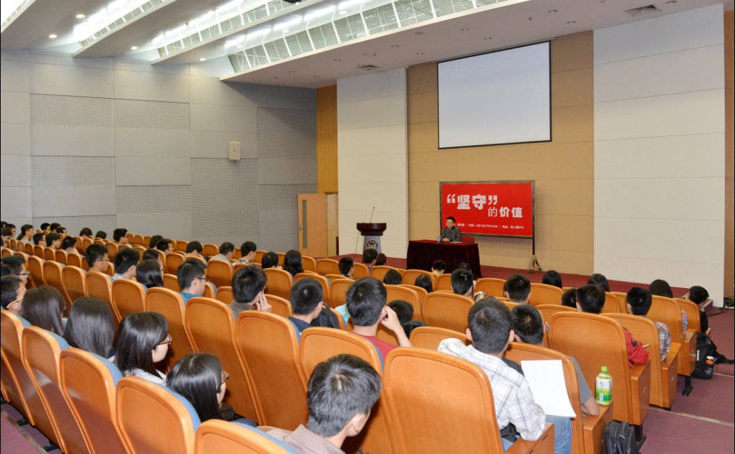演讲中,谭先生紧紧围绕“坚守”这一核心理念,与同学们分享了自己人生路上的九转曲折。从工作初期的卧薪尝胆、面对人生选择时的迷茫无助、到创业时的艰辛苦楚与事业有成后的不懈坚守,在谭先生的成功道路上“坚守”二字始终陪伴着他,在迷茫时点亮前路,在失败时不屈不折,最终走向了自己人生理想的方向。谭先生用自己丰富的生活阅历以及富含哲理的寓言故事生动地向同学们阐述了坚守的价值。最后,谭先生还不忘建议同学们珍视大学时代的友谊,珍惜自己的朋友圈子并互帮互助。