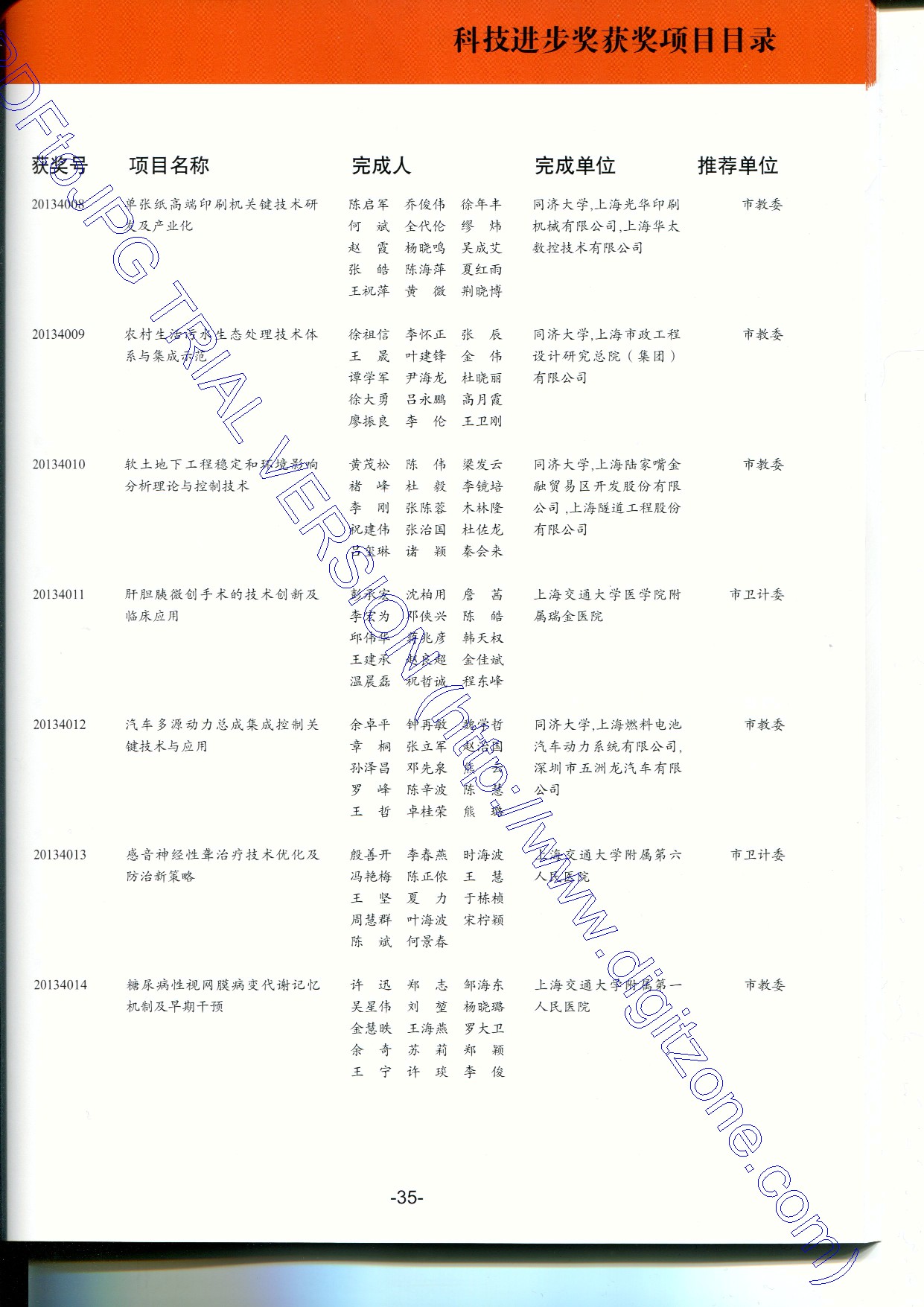 公司余卓平教授及其带领的团队经过专家初评、复核,经市科技奖励委员会审定,荣获2013年度上海市科学技术奖一等奖。