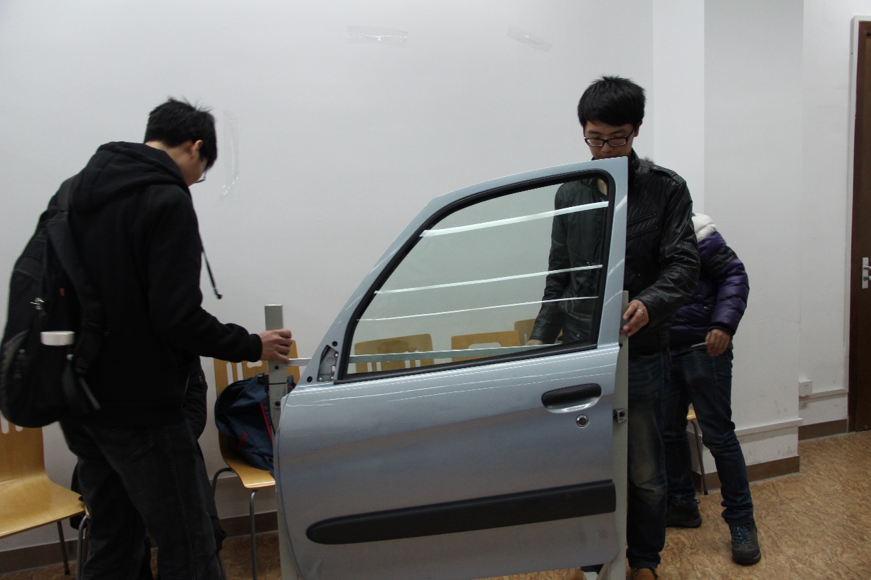 图为《汽车防碰撞车门自锁装置》项目实物操作展示