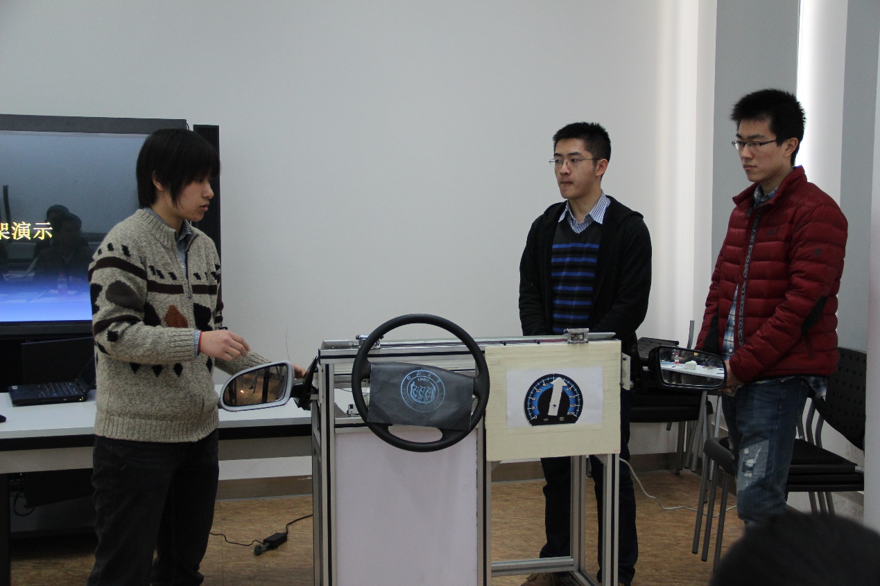 图为《自动调节随车转动的汽车后视镜设计的研究》项目实物操作展示