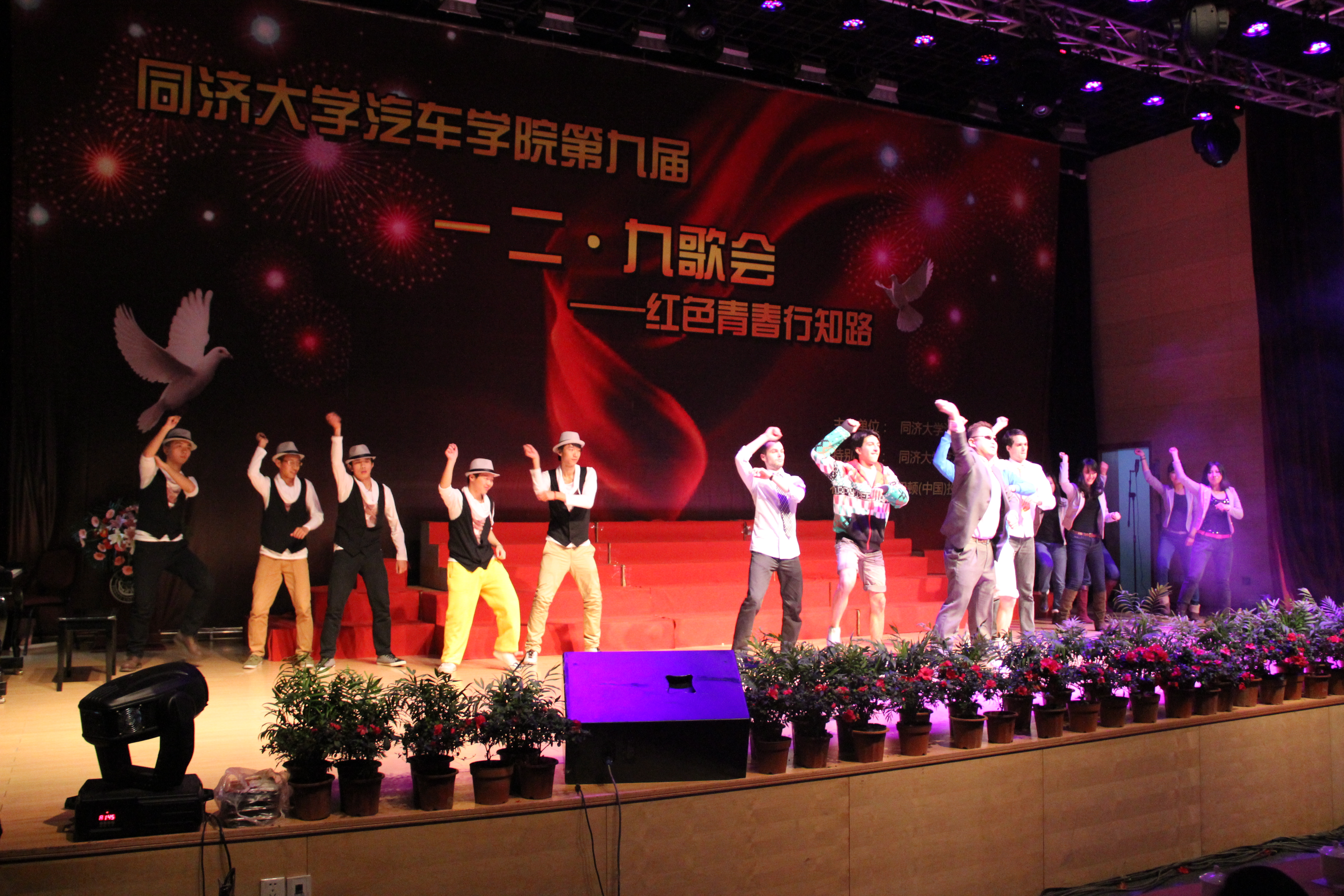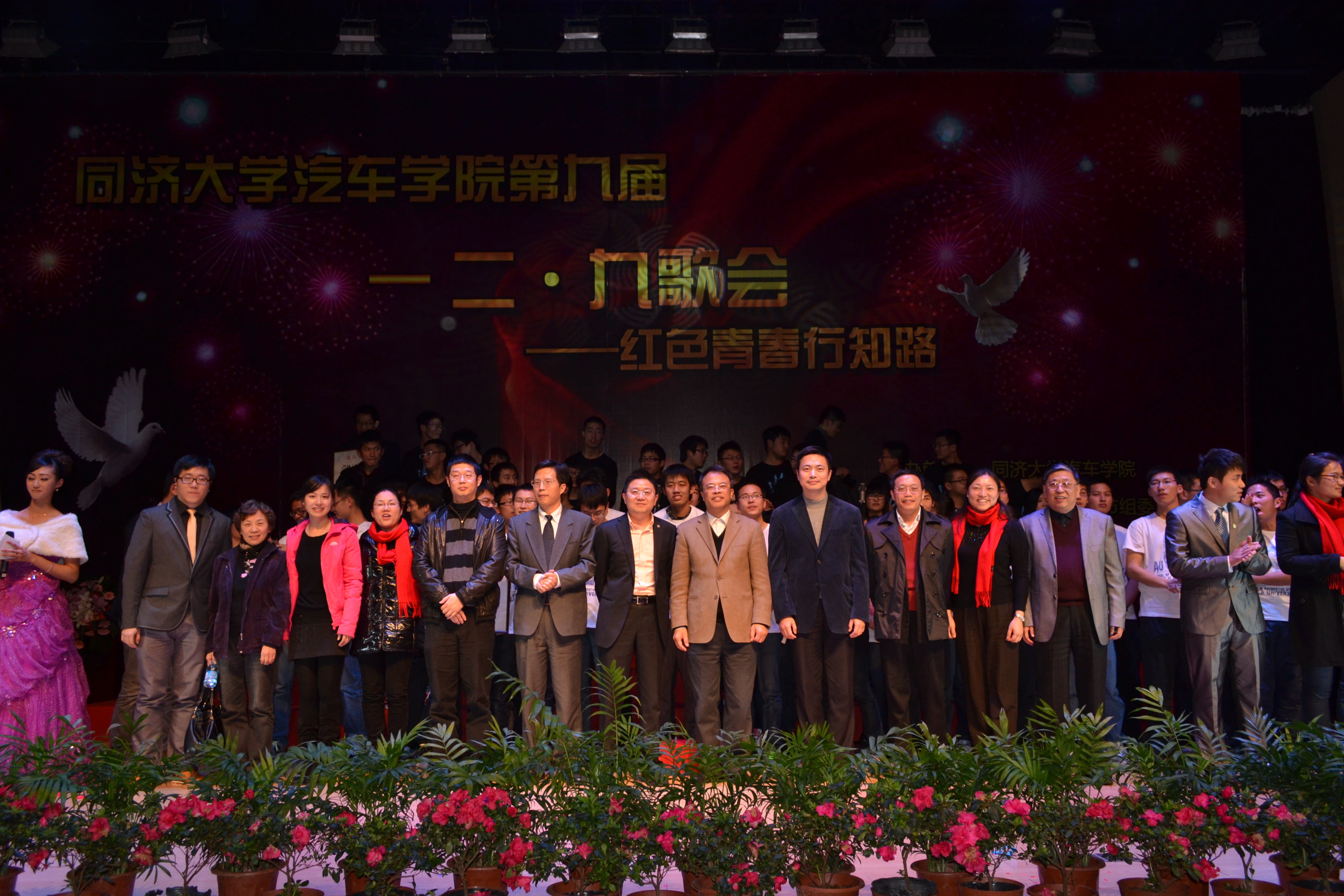 一二·九在职工和本科生的精彩舞蹈中拉开了帷幕。11级员工气势磅礴的《黄河大合唱》一下子震惊全场,12级员工稚嫩的歌声为大家带来了《红旗飘飘》……此次歌会共有16支参赛队伍、3支表演队伍,班主任与班级同学同台献唱,向全场展示了班级的精神风貌。上海汽车乘用车公司的精彩表演和安亭小学小朋友的可爱的表演瞬间让全场的气氛又一次HIGH了起来。拥有十多年历史的EP节能车队不仅在赛场上叱咤风云,今晚也为大家带来了自己谱写的队歌,感动了全场的观众。在表演合唱的同时,两边的微博墙和班级的介绍视频让晚会气氛活跃。公司教师代表对为大家带来了《国家》,老师们深情的演唱感染了在场的同学,员工发微薄表示“国是荣誉的毅力,家是幸福的洋溢,BETVICTOR伟德是个温暖的大家庭”。晚会在全体师生合唱《同济校歌》中达到高潮,在场的老师、同学深深地感受到了身为同济人的自豪、身为汽车人的骄傲!