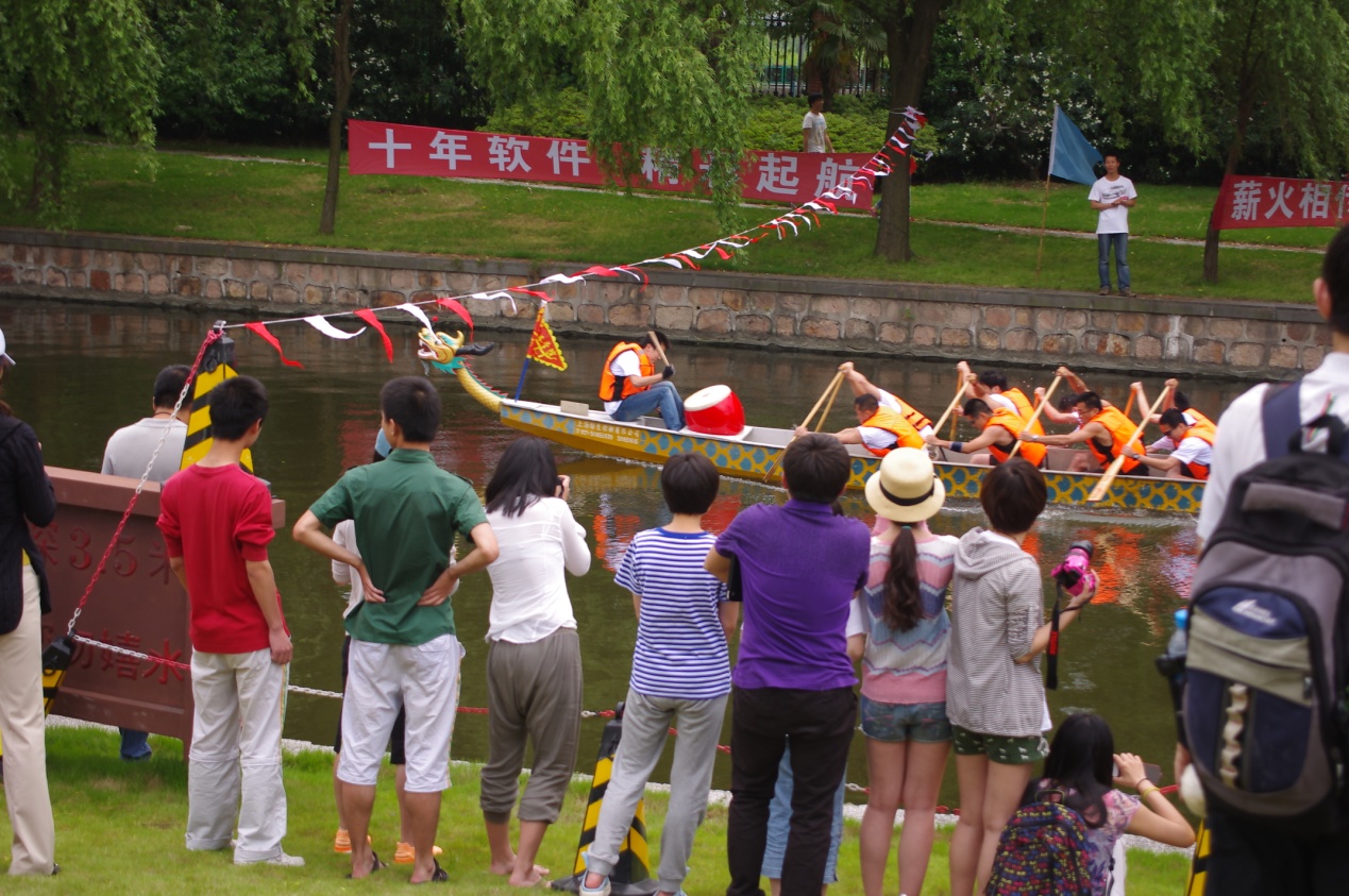 决赛中,汽院龙舟队和国防生作为去年的冠亚军再次相遇,整个过程两支队伍齐头并进,由于身体素质上的短板,最终遗憾的以0.5秒的差距屈居亚军。