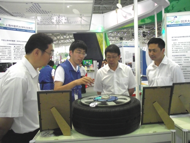 开幕式后,中国科协党组书记、常务副主席陈希在李昕的陪同下来到公司展位进行观摩,公司参展志愿者详细介绍了公司老员工科技创新成果与科技服务的经验与做法,并邀请陈希同志参观了由公司老员工自主设计的第十二届“挑战杯”老员工课外学术科技作品竞赛获奖项目防爆轮胎。陈希对公司科学商店与老员工科技创新成果给与了充分肯定,鼓励现场师生志愿者继续发扬科创精神与同济精神,不断进取创新,利用科学技术与发明创造更好地发挥大学服务社会的功效。
