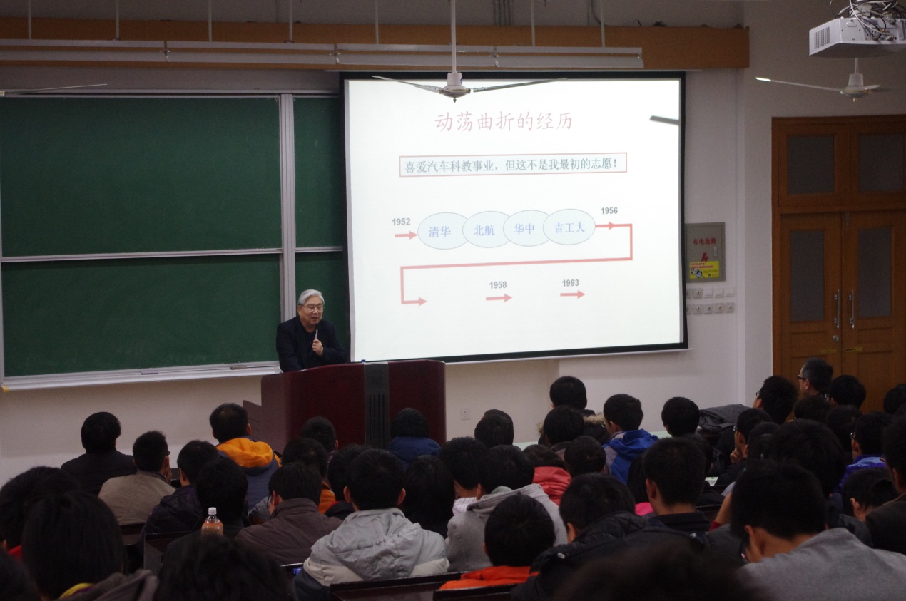 全场同学都被郭院士坚持一生的信念所震撼。祖国的汽车事业祖国的汽车事业让郭孔辉一生执著不悔。回首往事,年过古稀的他心境平和而宁静,一生的得与失、苦与乐仿佛都在谈笑间绘成一幅幅美丽的画卷。正如郭院士自己所言,他见证了中国国产车的成长,辗转四所公司才完成大学学业,文革时期不尽如人意的生活都没有浇灭郭院士对献身祖国工业发展的热情。“无论是做天上‘飞’的还是地上‘跑’的,只要是国家需要的,我就一定要把它做好!”郭院士的话深深激励了台下的同学们,一次次会心的笑容一阵阵经久不息的掌声表达了同学们对郭院士的敬意。